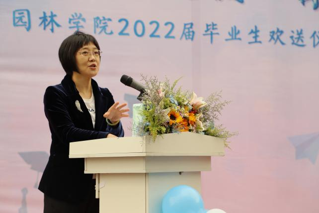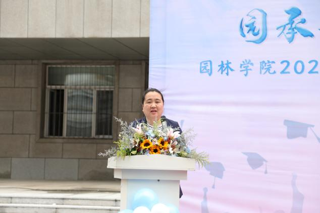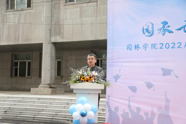 最后,学院教授委员会代表许大为老师代表全体教师对学生们送出寄语,作为即将毕业的园林人,希望同学们感恩母校培养,在未来的道路上继续努力奋斗,用过硬的专业知识真正替河山装成锦绣,把国土绘成丹青!
